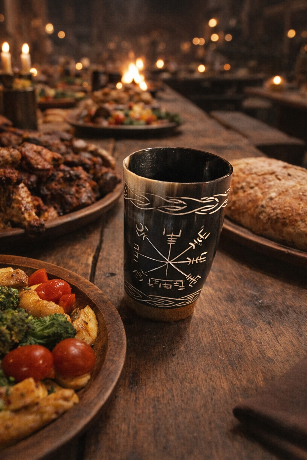 Perfectly sized for a bold shot of mead, whiskey, or your favorite spirit, this glass is made to stand out on any feast table — from Viking gatherings to modern-day celebrations.