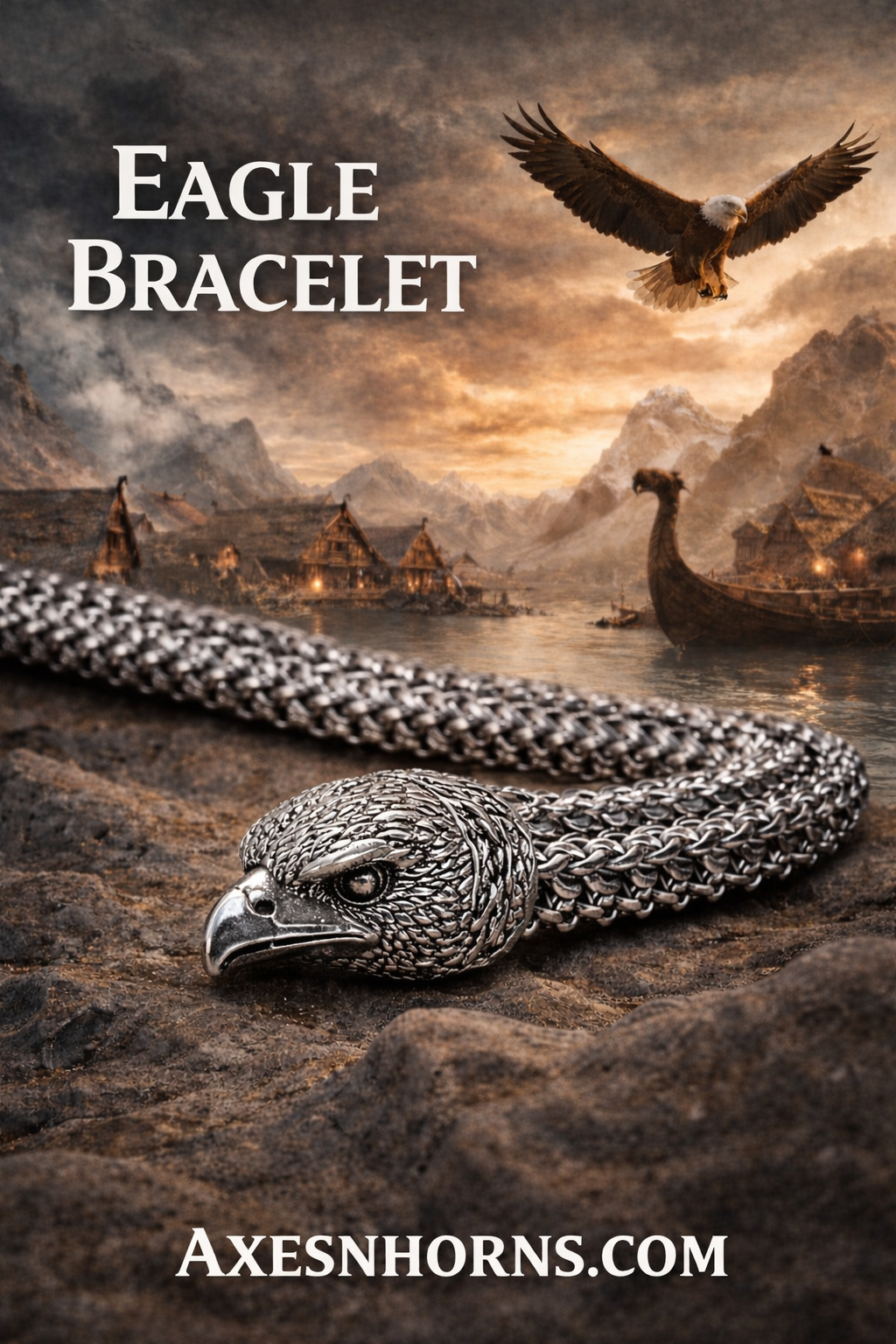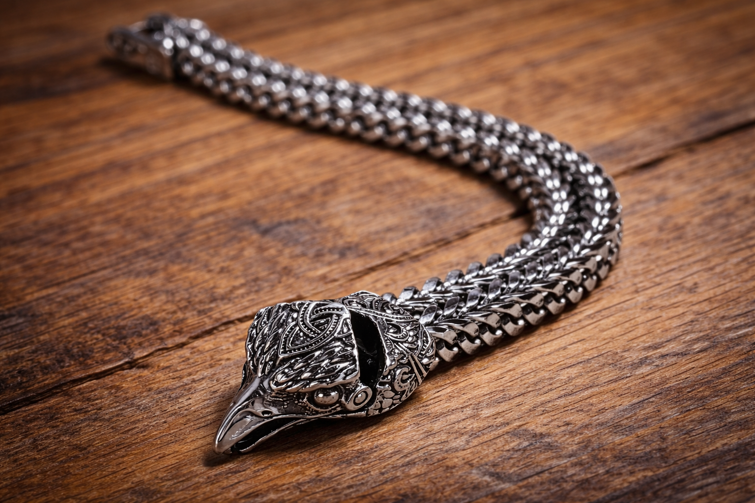 Crafted from high-quality stainless steel, this bracelet features a thick, tightly woven chain that delivers both durability and a bold, masculine presence. Intricate Norse-inspired engravings bring the eagle head to life, while the secure clasp ensures confident, all-day wear.